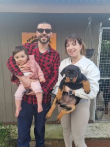 Just writing you a message to say thank you for giving us the opportunity to own one of your rottweilers. Clyde is about 6 months of age now and is already an important member of our family. I can honestly say that I have never owned a dog with such a willingness to learn. He is doing outstanding in all aspects of his training. You are clearly passionate about the breed and it definitely shows with the quality of the dogs you produce.
